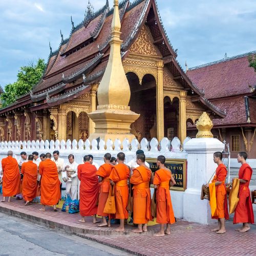 Your memorable trip will start from partaking in an alms ritual in the morning, you will accept the blessing by monks who you give the alms. Have breakfast in the hotel and then, visit the Royal Palace Museum to learn some history of Laos. Continue to you will embark on a private boat for a 2 hours boat trip along the Mekong River to the Pak Ou Cave. During the boat trip, you will enjoy the beautiful scenery along the Mekong River and see the daily fishing life of local people in the riverside.