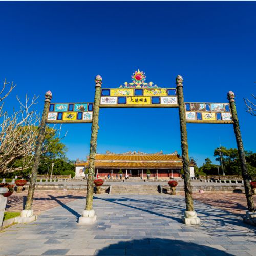 In the morning, you’ll start with a visit to the Perfume River, a river famed for its natural scenery and numerous flowers that cover its shores. Along the river, you’ll see Vietnamese daily life up close. Your boat will take you to the Tomb of Minh Mang, featuring gardens, many steps, and beautiful decorations.