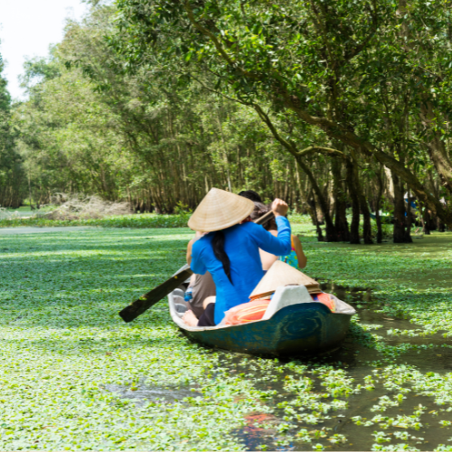 • Walking, cycling and taking several boat trips through the vast green world of the Mekong Delta