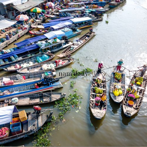 • Visiting the floating market of Cai Rang and watching the whirlwind of activity on show there