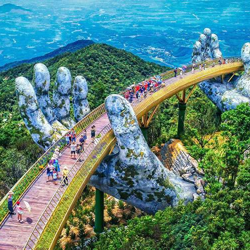 You should not miss walking on the Golden Bridge amid the foggy hills of the mountain, enjoy the gorgeous view of Da Nang City. Have lunch at restaurant.