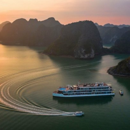 After a hearty breakfast, depart for the UNESCO World Heritage site of Halong Bay. Board a luxury cruise and sail among the limestone karsts and emerald waters. Enjoy a full day of onboard activities including cave exploration, kayaking, and a delicious seafood lunch. Witness a stunning sunset over the bay before returning to your cruise ship for dinner and an overnight stay on board.