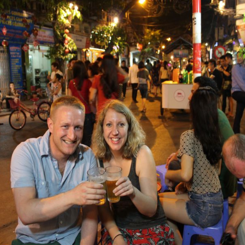 Around 6 pm, we will start walking around the Old Quarter along different streets, try to taste many kinds of local food such as beef/chicken noodle soup, oil-fried pastry, tofu, rice pancake, pillow cake, sweet soup, stuff pancake with pork, draught beer… and one of our best surprised is a stop at Dong Xuan whole sales market where we know many kinds of ingredients being sold.